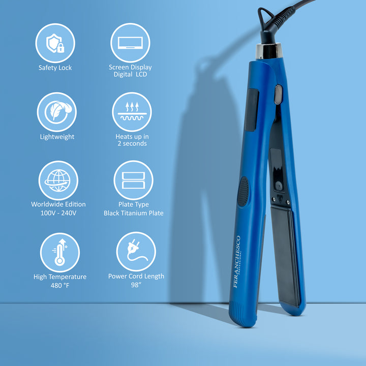 Get salon-quality results at home or in the studio with the Feranchesco Titanium Plate 1.25" – a premium titanium flat iron engineered for fast, smooth, and frizz-free styling on all hair types. Designed with floating black titanium plates and intelligent heat sensors, this professional hair straightener ensures even heat distribution and maximum control, minimizing damage and enhancing shine.